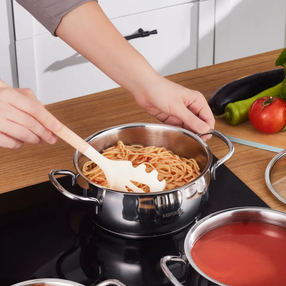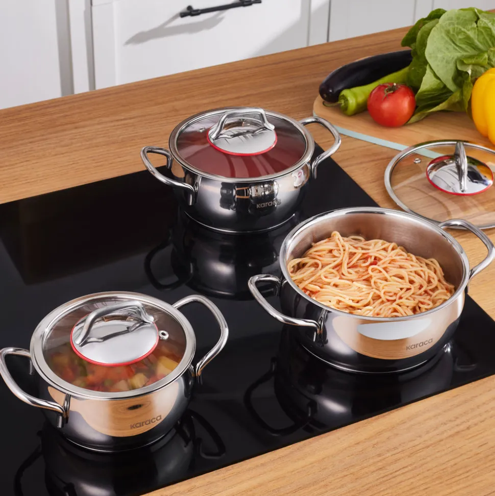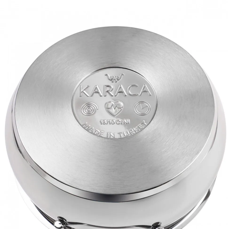 - Die Karaca-Stahltöpfe sind rost- und abriebbeständig. Der spezielle Energiekapselboden, der die Wärme zurückhält, sorgt für maximale Zeit- und Energieeinsparung. Enthält keine krebserregenden Stoffe und hält keine unangenehmen Gerüche oder Bakterien zurück.