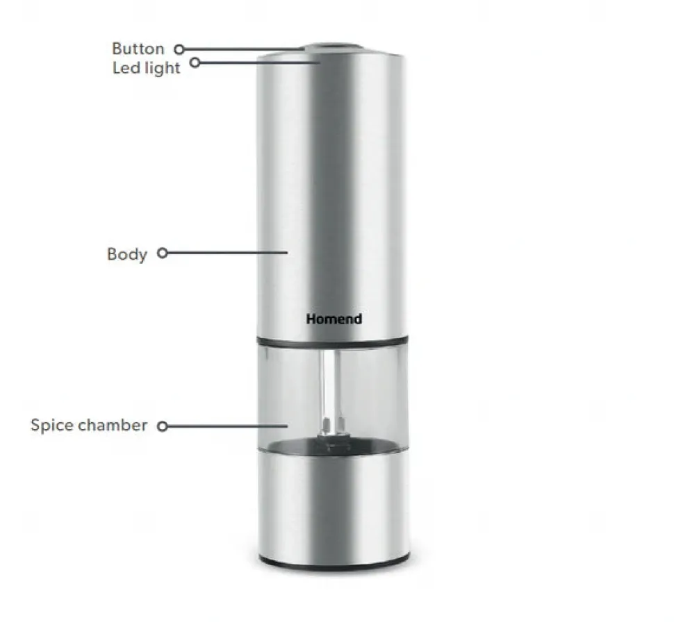 Homend Grindgo 6004UK Wiederaufladbare Gewürzmühle, Inox