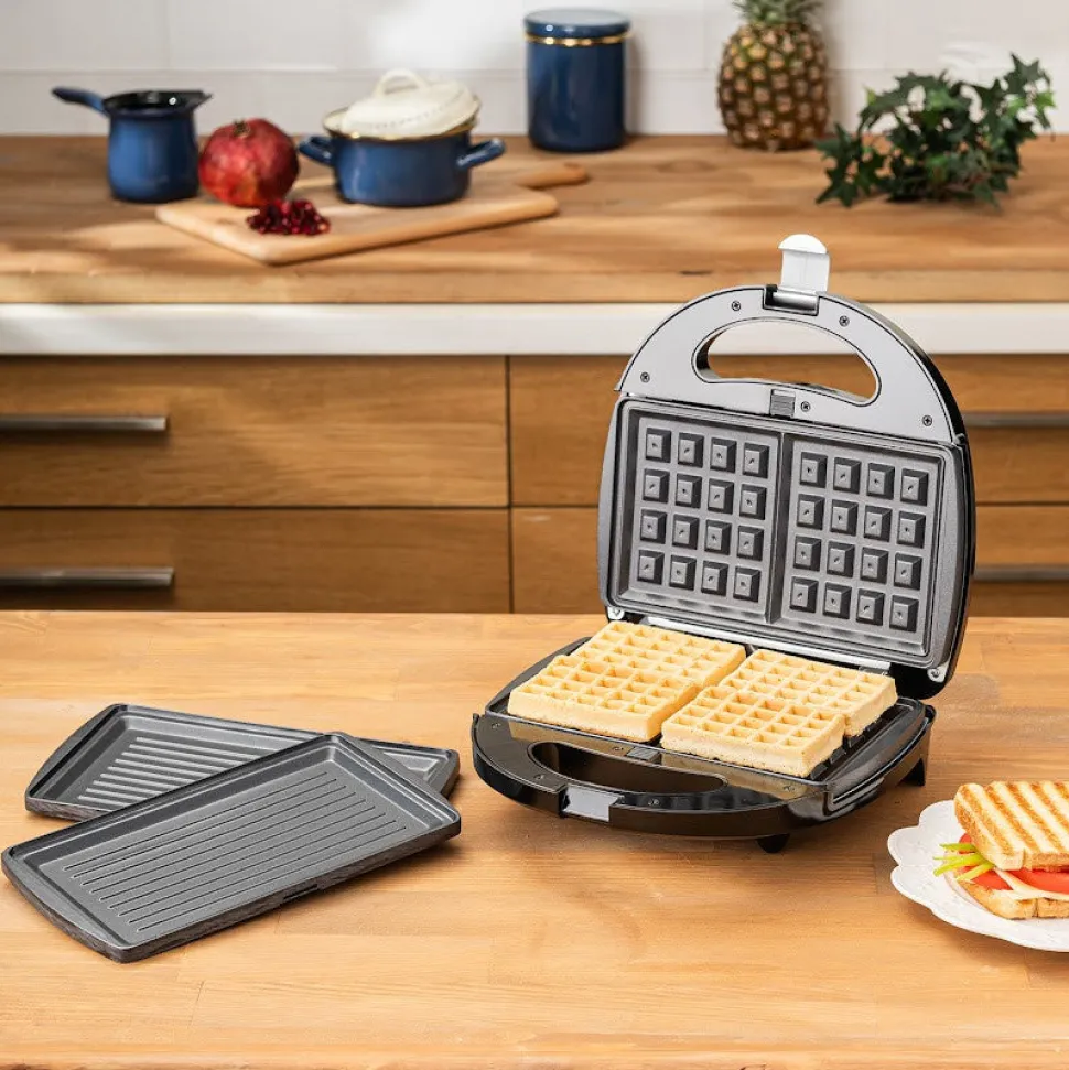 Bietet nicht nur Grillen und Toasten, sondern auch die Möglichkeit, Waffeln zuzubereiten.