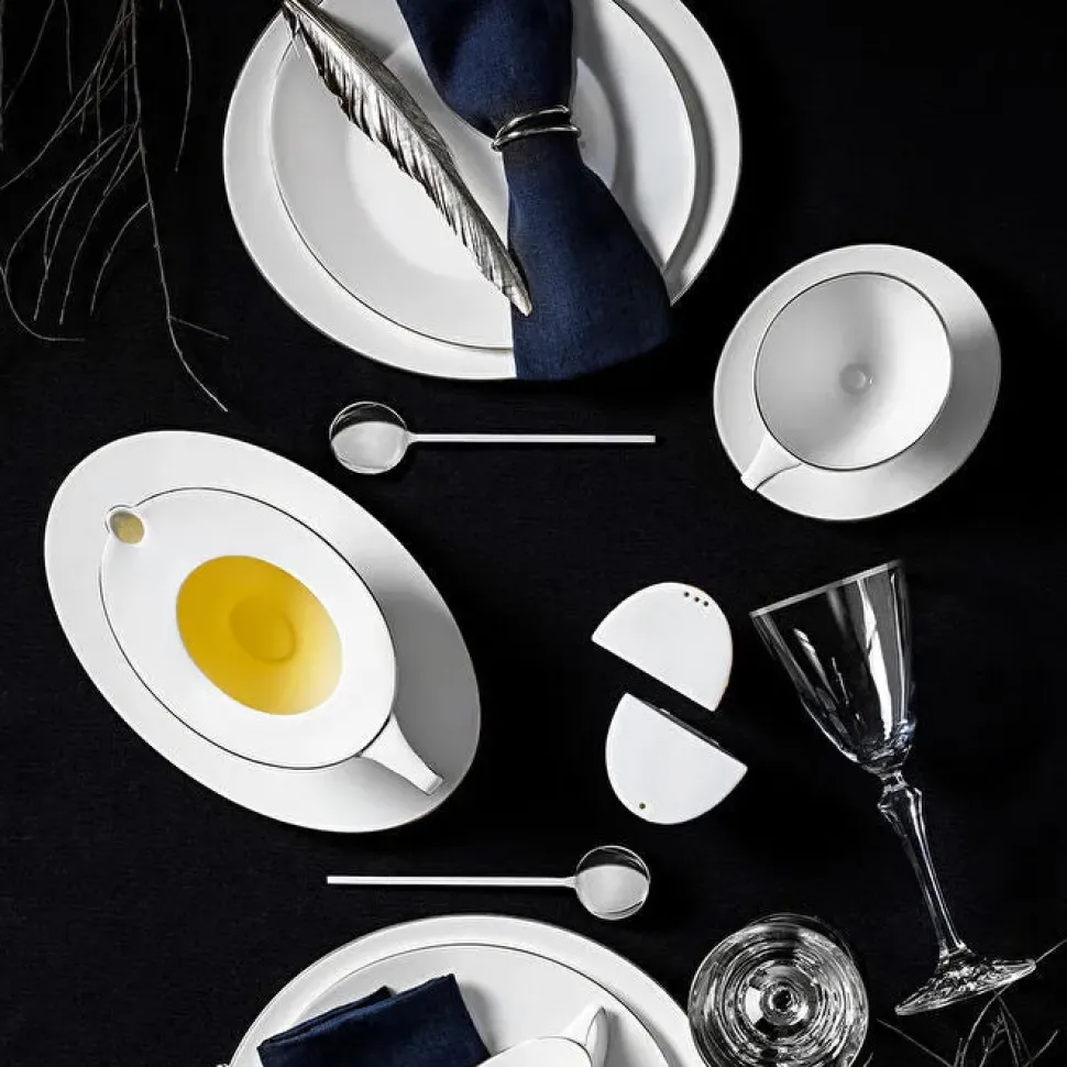 Gefertigt aus hochwertigem Bone China, bietet das Moon Platin Set eine elegante Transparenz und hohe Beständigkeit gegen Temperaturschwankungen. Die cremig-weiße Farbe verleiht dem Set einen luxuriösen Charakter – ideal für den täglichen Gebrauch und festliche Anlässe.