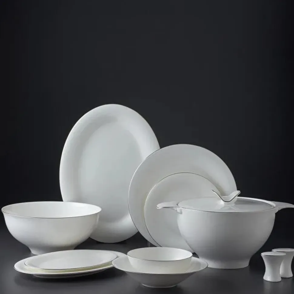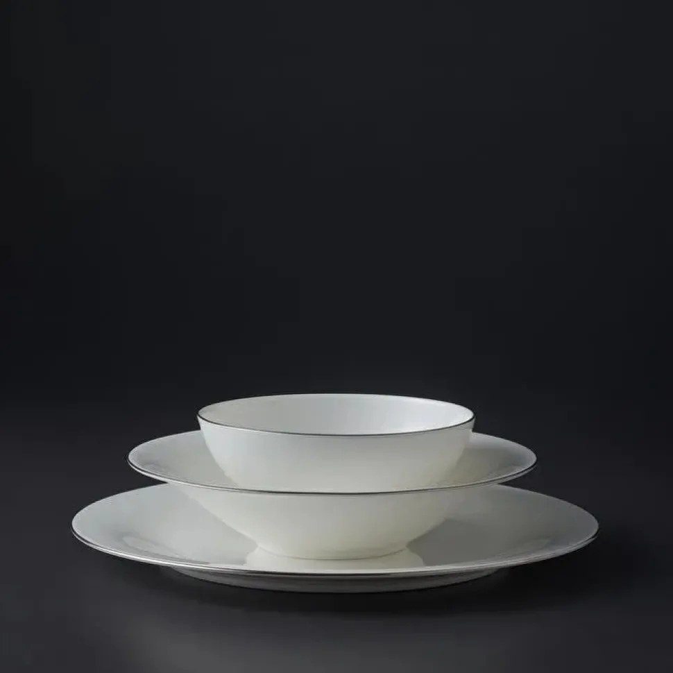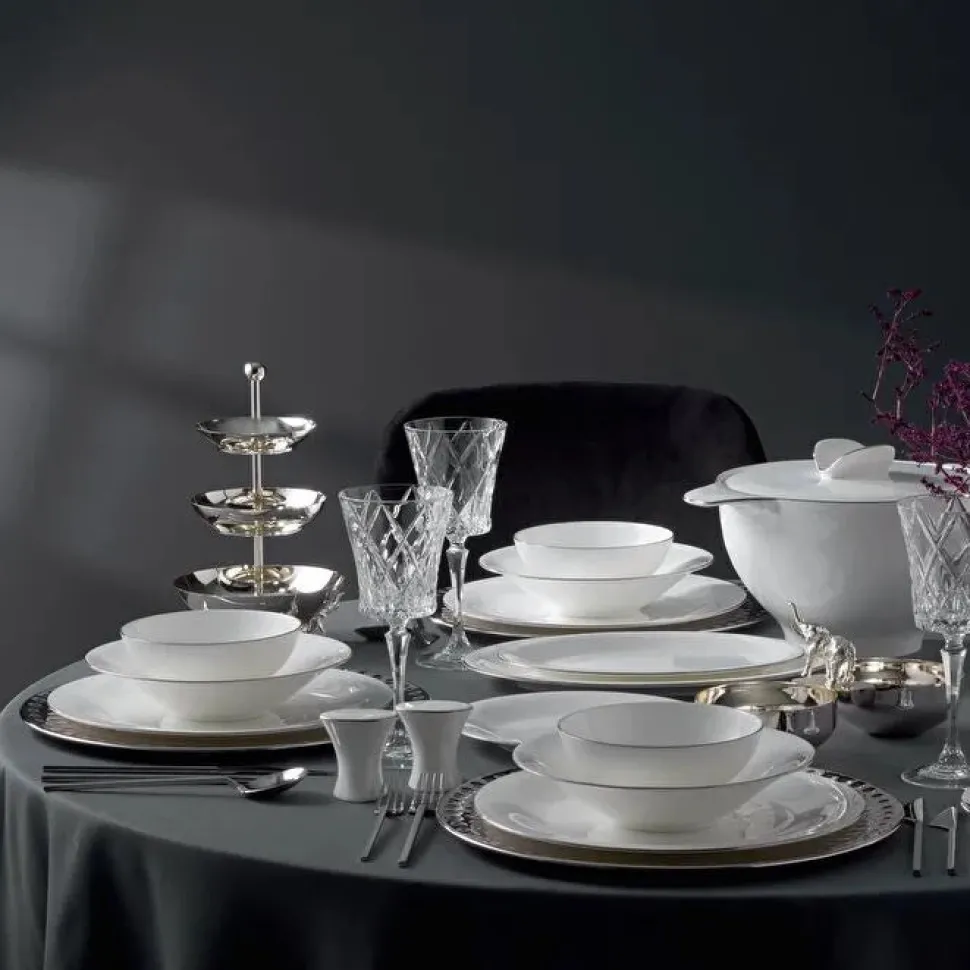 Das Jumbo Silva Tafelservice ist das Herzstück jeder stilvollen Tischdekoration. Mit seinem eleganten und minimalistischen Design passt es perfekt zu modernen wie klassischen Einrichtungen. Die ovalen Formen und die feine Bone-China-Struktur verleihen dem Set einen edlen Charakter, der jeden gedeckten Tisch aufwertet.