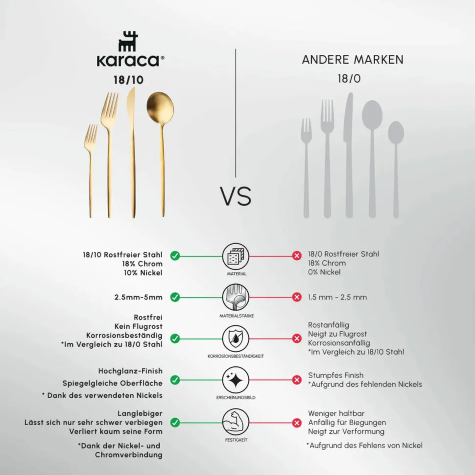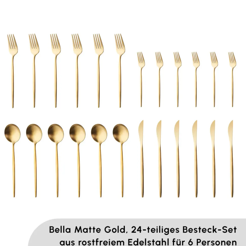 Karaca Bella Matte Gold Besteck Set für 6 Personen, 24 Teilig