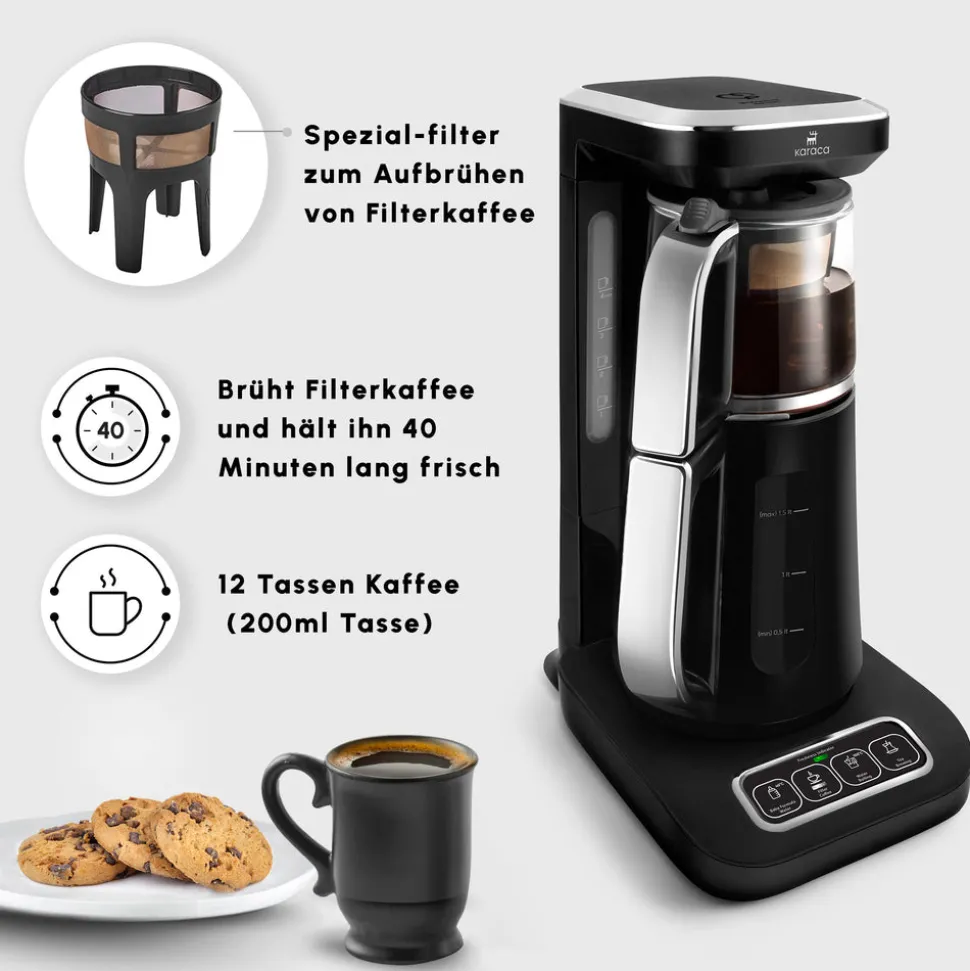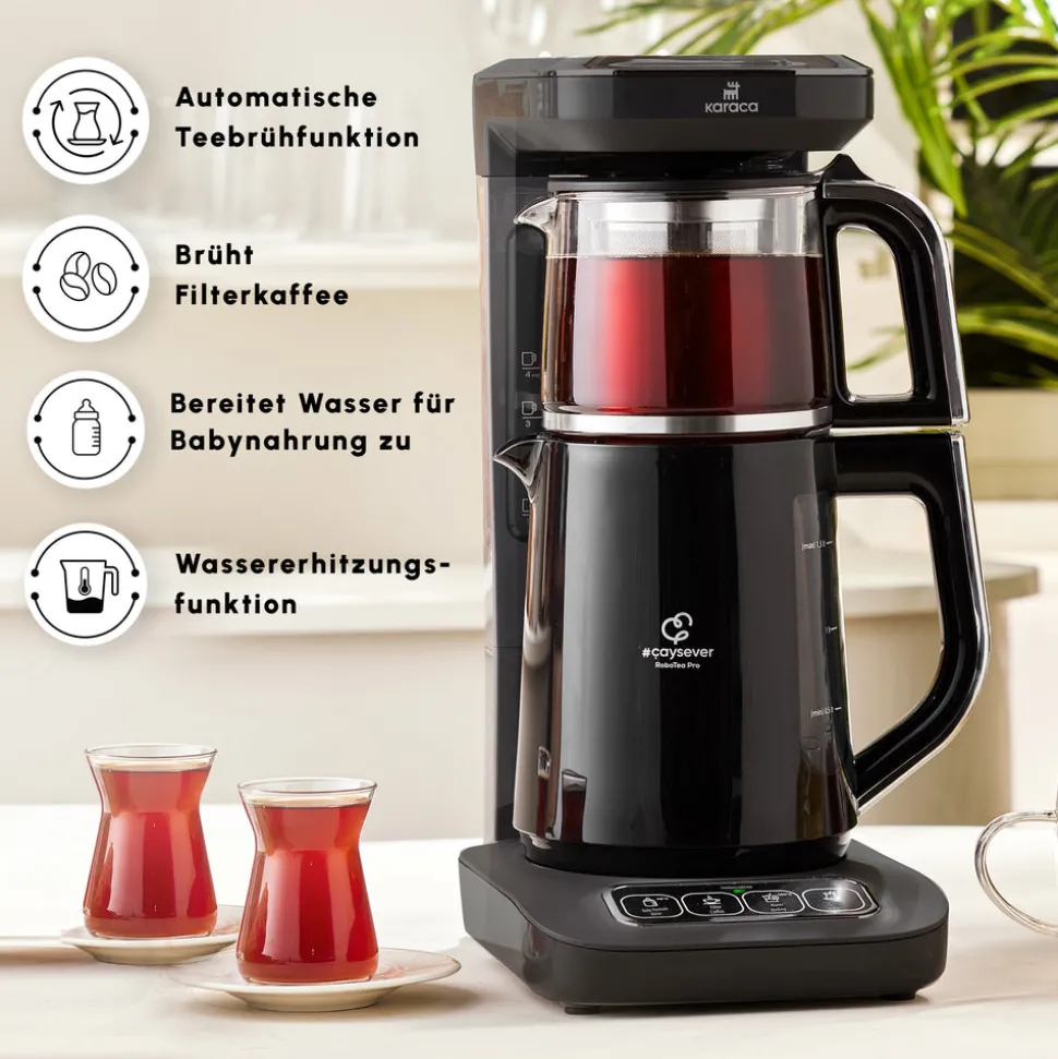 Karaca Caysever Robotea Pro 4 in 1 sprechender automatischer Teekocher Wasserkocher und Filterkaffeemaschine 2500W Chrome