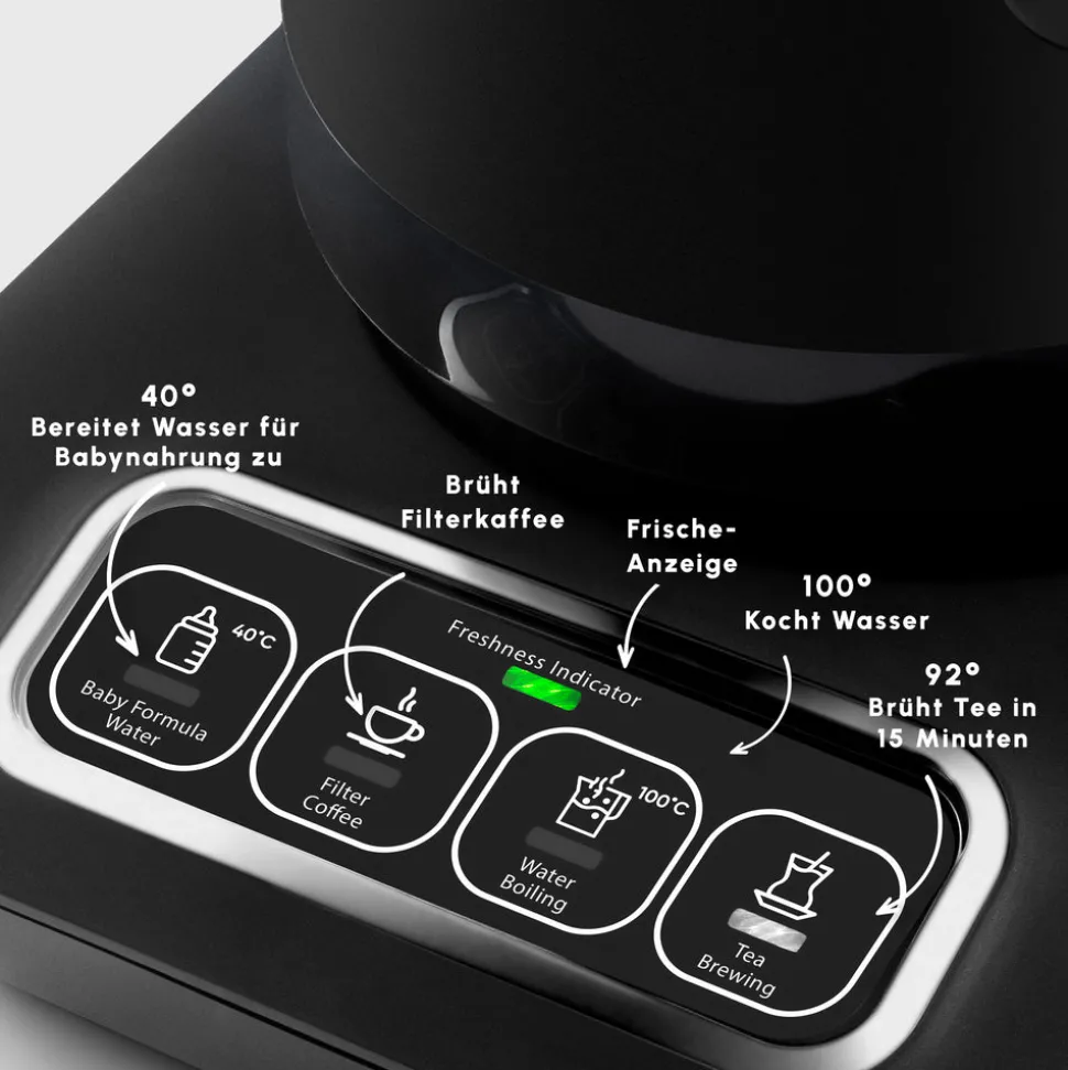 Mit seiner automatischen Warmhaltefunktion hält er Ihren Tee, Kaffee und das Wasser während des Tee- oder Kaffeegenusses warm.