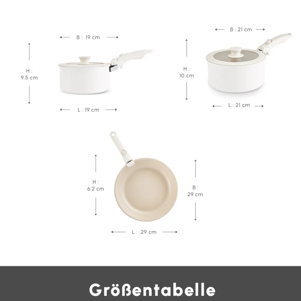 Das Karaca Comfort 6-teiliges Keramik-Kochgeschirrset mit abnehmbaren Griffen bereichert nicht nur Ihre Küche, sondern spart auch Platz und sorgt für eine einfache Aufbewahrung. Dank der einfach abnehmbaren Griffe kann es sowohl im Ofen als auch auf dem Herd verwendet werden. Dieses Set kann durch Entfernen der Griffe bequem am Tisch verwendet werden und passt auch problemlos in den Kühlschrank. Die stapelbaren Teile sparen Platz in Ihren Schränken, wenn sie nicht in Gebrauch sind. Dank der feuerfesten Antihaftbeschichtung wird Ihr Essen mit der besten Konsistenz gekocht. Es enthält keine schädlichen Substanzen, was eine gesunde Nutzung gewährleistet. Es kann mit allen Herdarten, einschließlich Induktionsmodellen, verwendet werden.