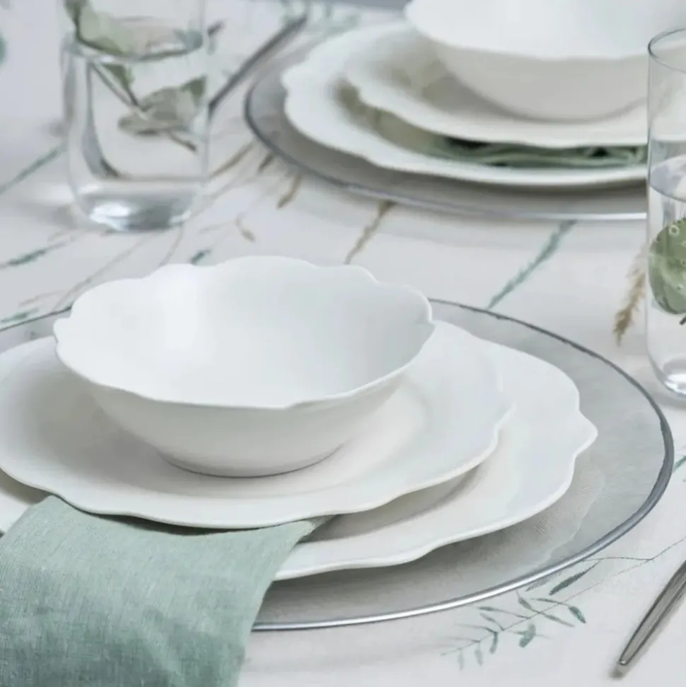 Karaca Daisy für 4 Personen Geschirrset, 12 Teilig, New Generation Bone, Weiß