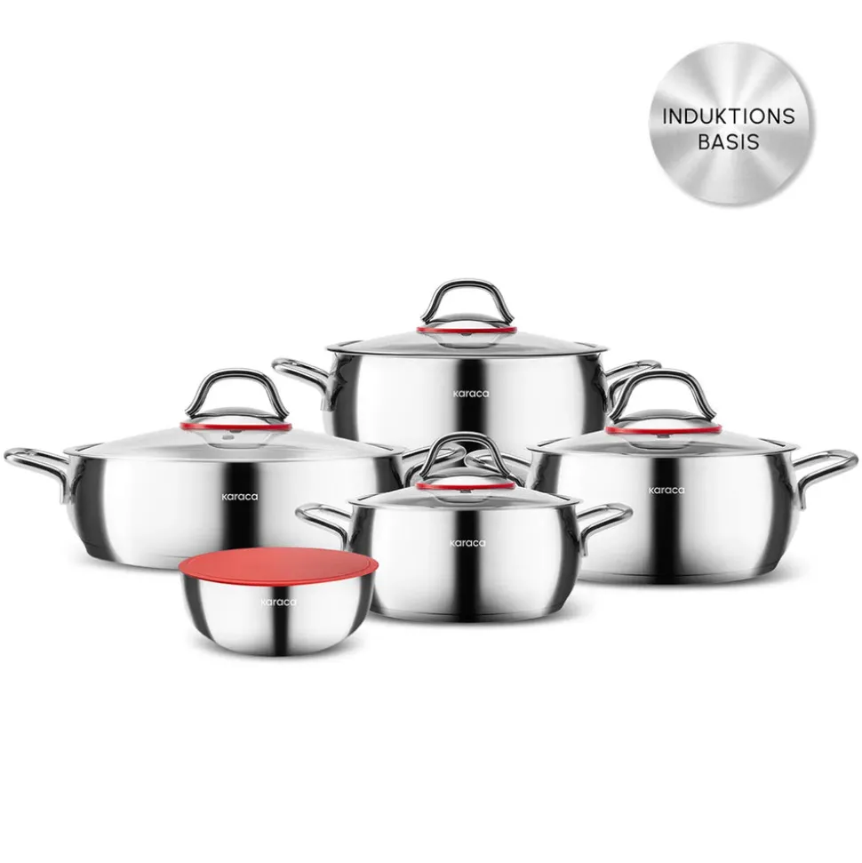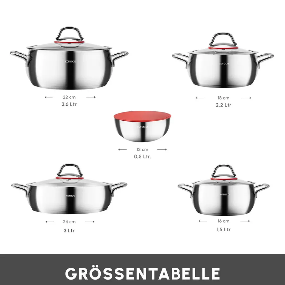Karaca Emirgan XL 10-teiliges Kochtopfset für Induktion aus Stahl mit Aufbewahrungsdeckel
