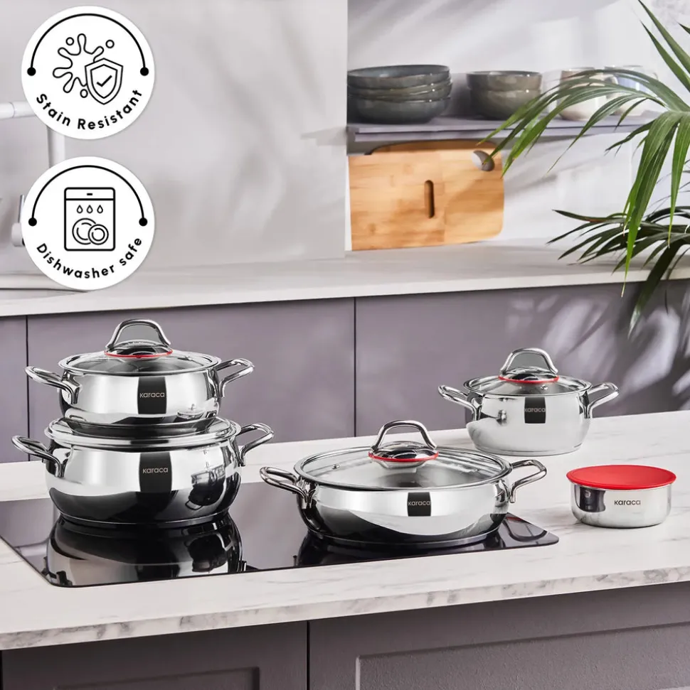 Dank seiner Struktur aus rostfreiem Stahl ist das Emirgan Steel Cookware Set langlebig und gesund.