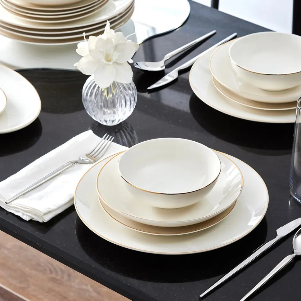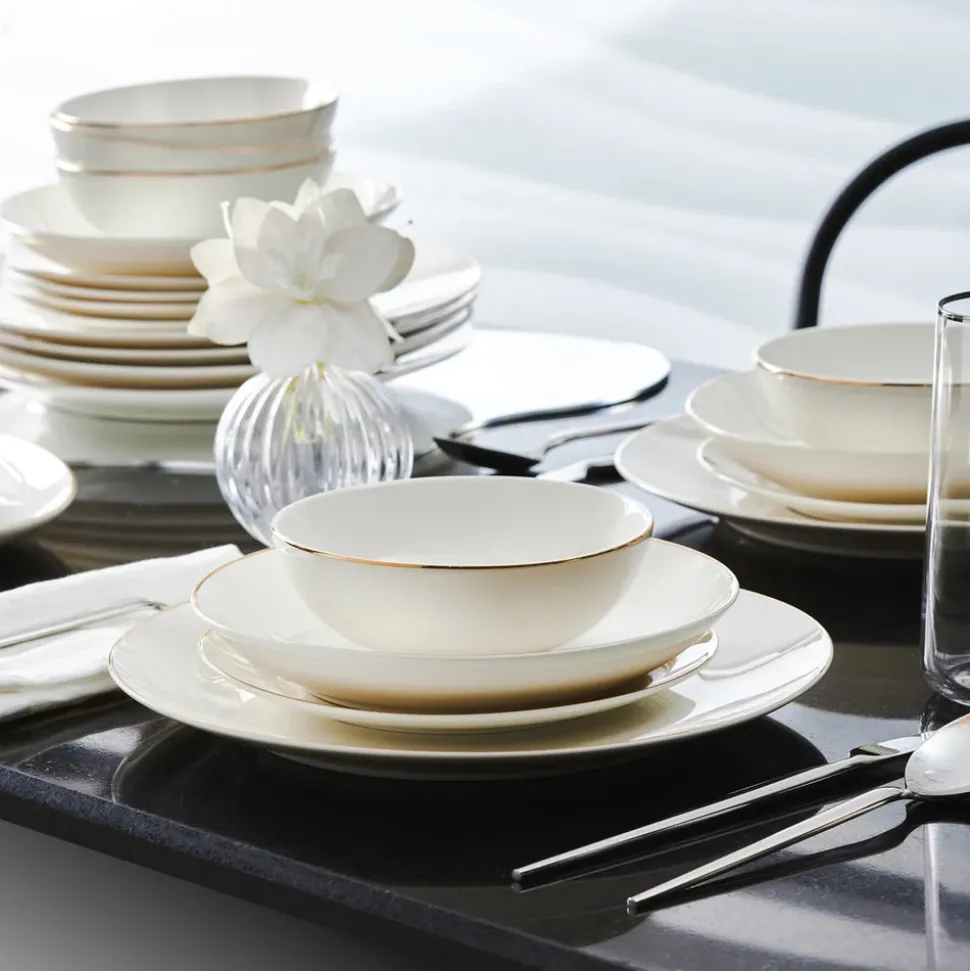 Karaca Esbelto 12 Personen Geschirrset, 56 Teilig, New Generation Bone, Gold