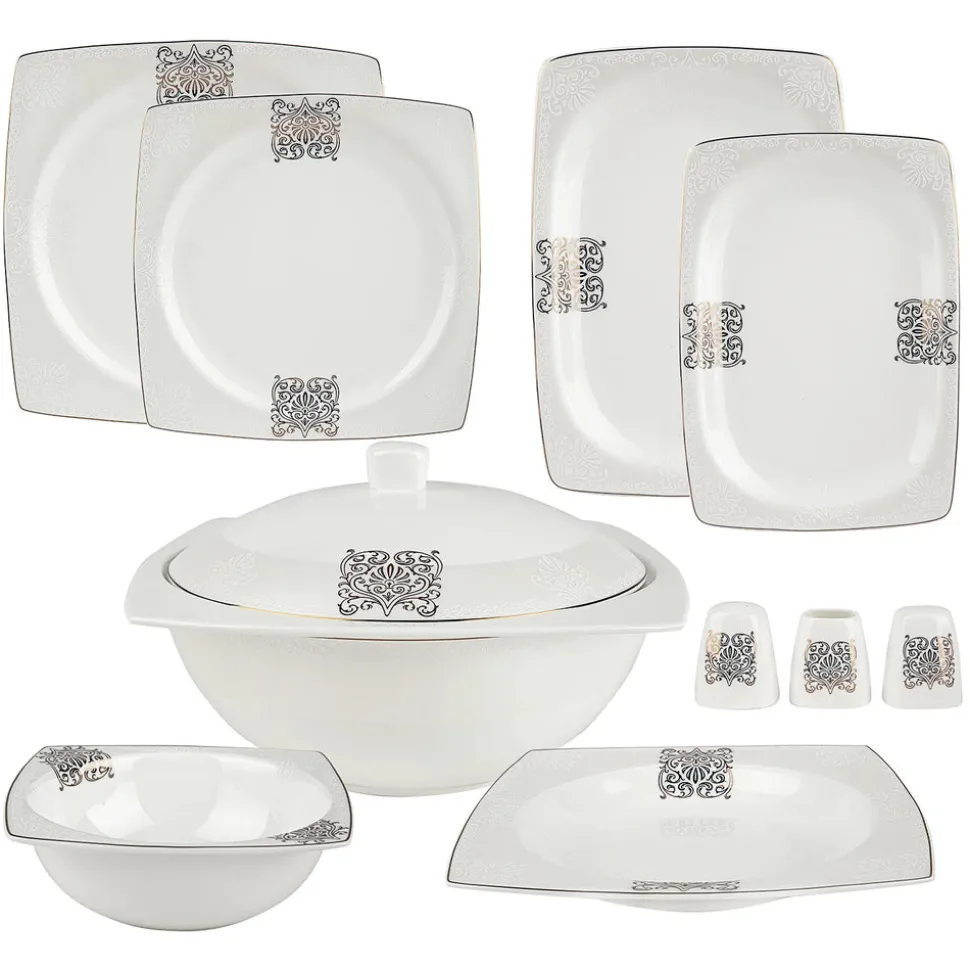 Karaca Fine Bone New Lotus 60 Pieces Dinnerware Set Square