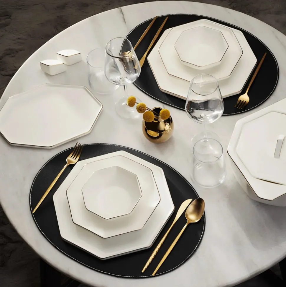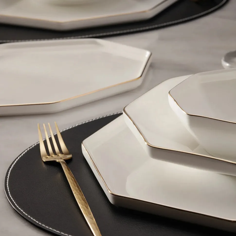 Karaca Fine Pearl Extra Eight Corner 62-Teiliges 12-Personen Geschirrset Gold