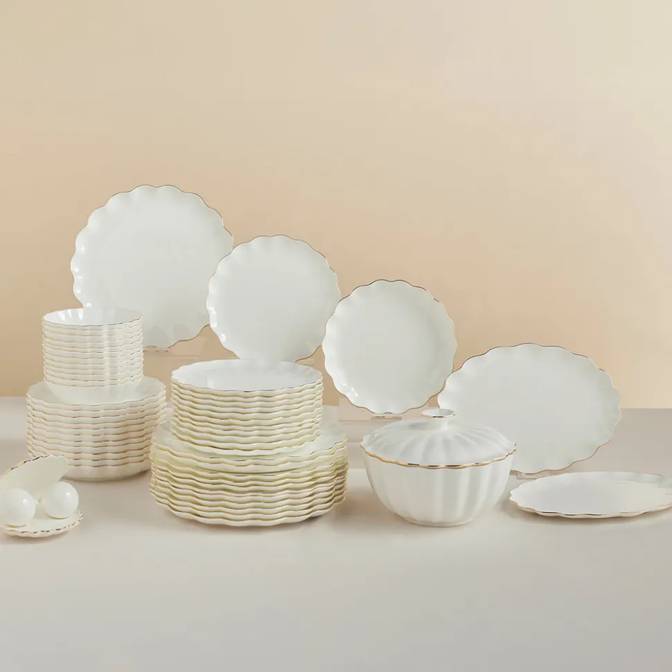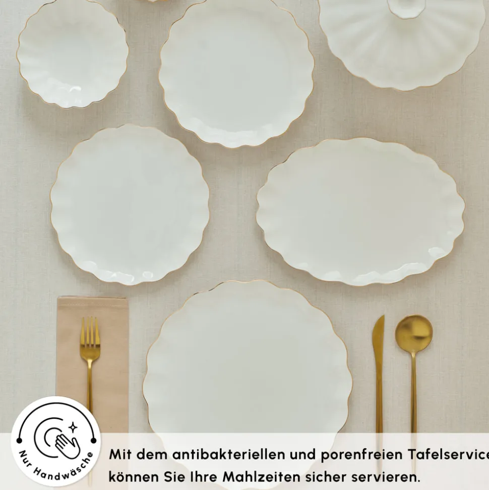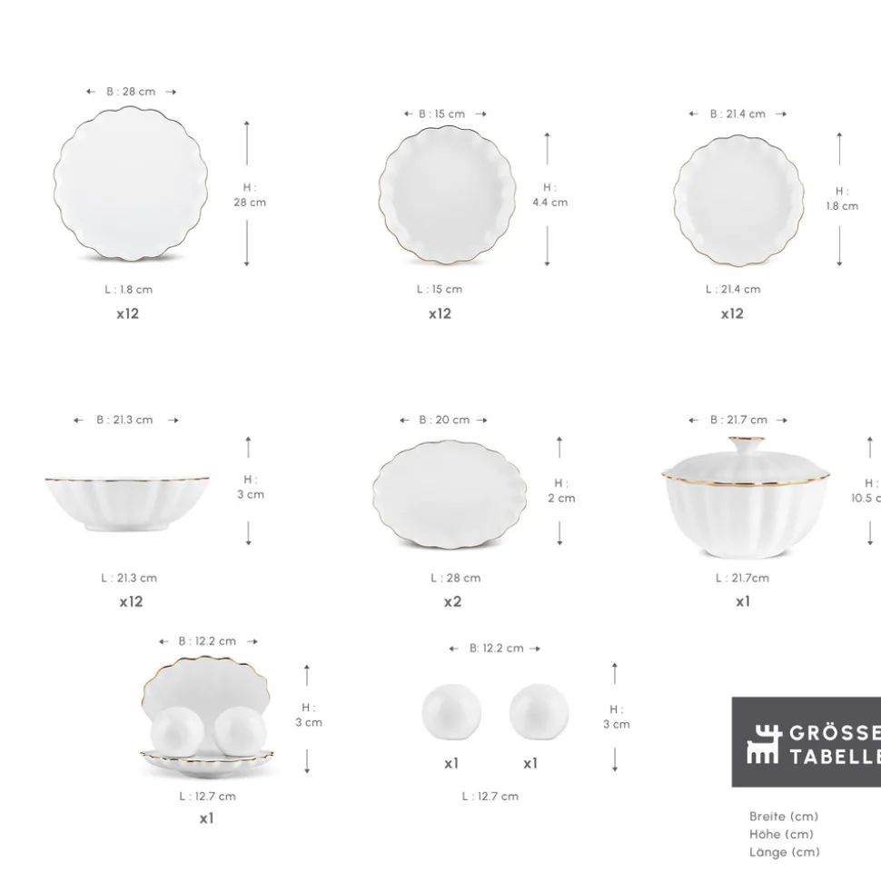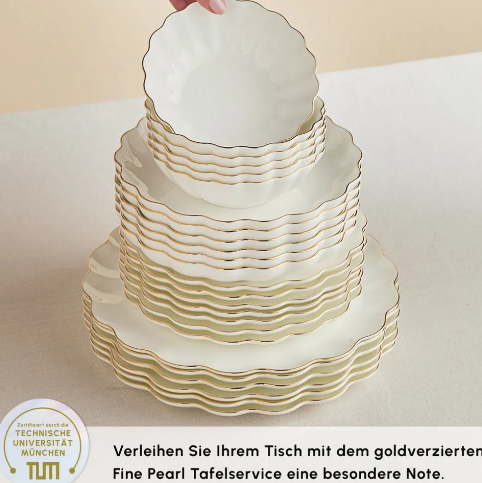 Karaca Fine Pearl Extra Shell 55-teiliges 12-Personen Geschirrset Gold