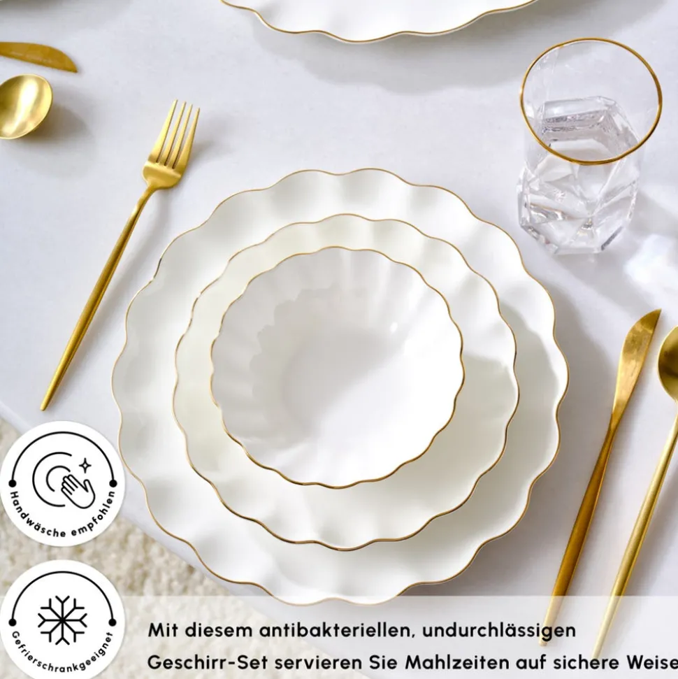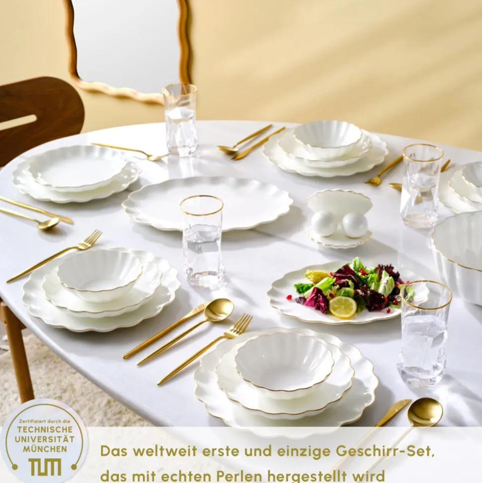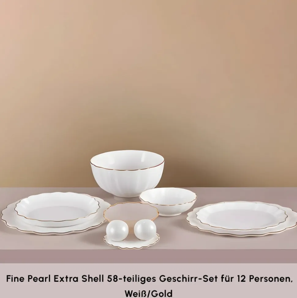 Karaca Fine Pearl Extra Shell 58-teiliges 12-Sitzer Tafelservice Gold