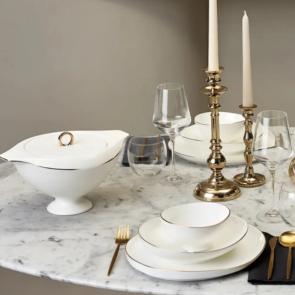 Karaca Fine Pearl Extra Wilderness 62-Teiliges 12-Personen Geschirrset Gold