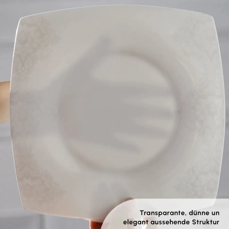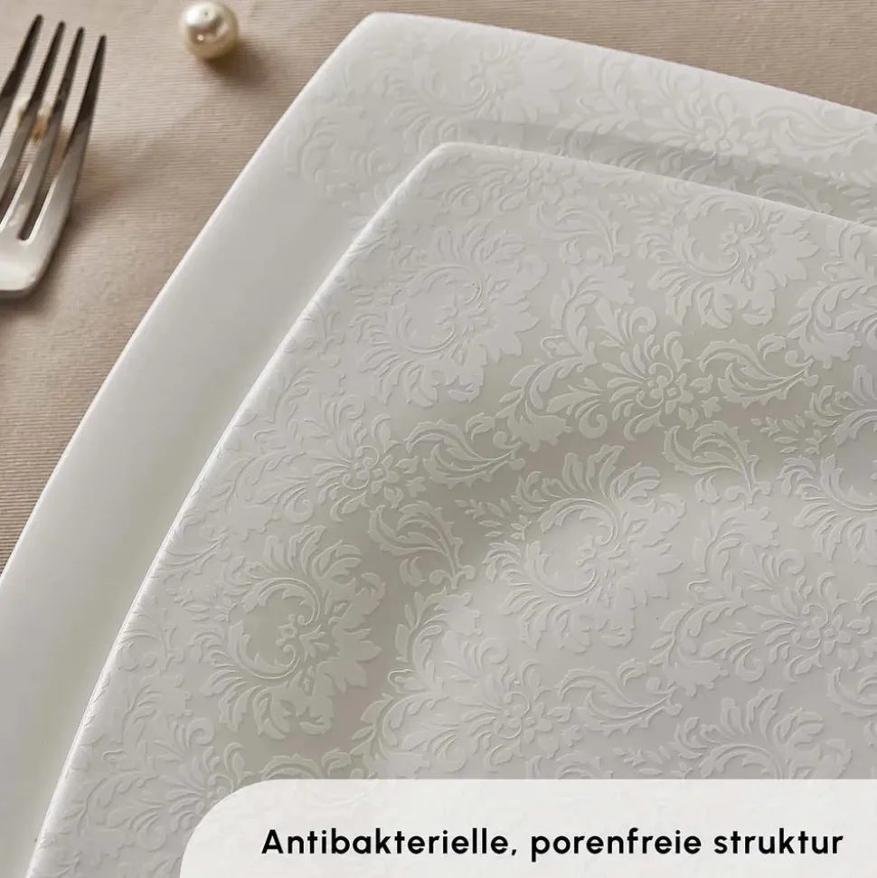 Karaca Fine Pearl Helen 58-teiliges Tafelservice für 12 Personen – Eckiges Perlendesign