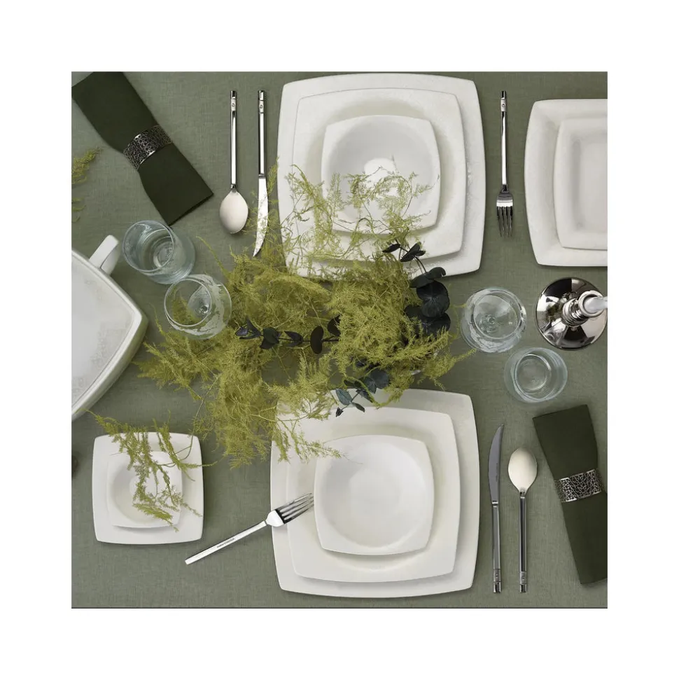Karaca Fine Pearl Melita 62-teiliges Pearl Geschirrset für 12 Personen Quadratisch
