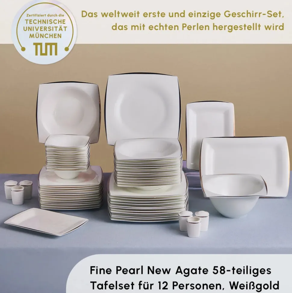Karaca Fine Pearl New Agate 58-Teiliges 12-Personen Geschirrset Gold