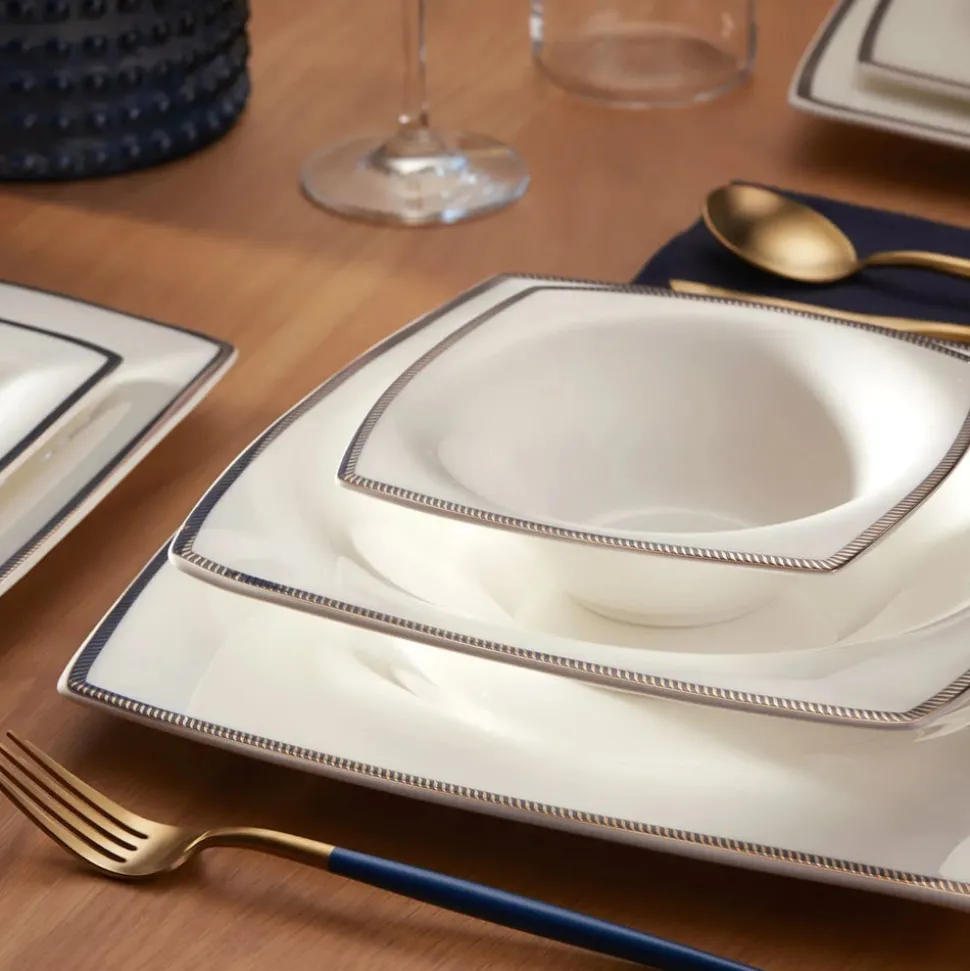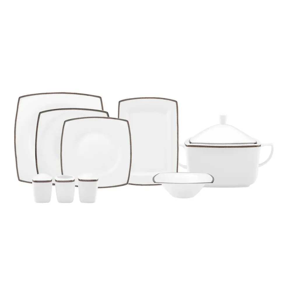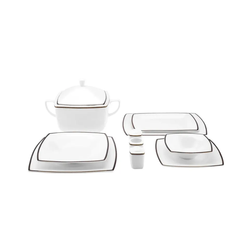 Karaca Fine Pearl Norma 62-teiliges quadratisches Tafelservice für 12 Personen