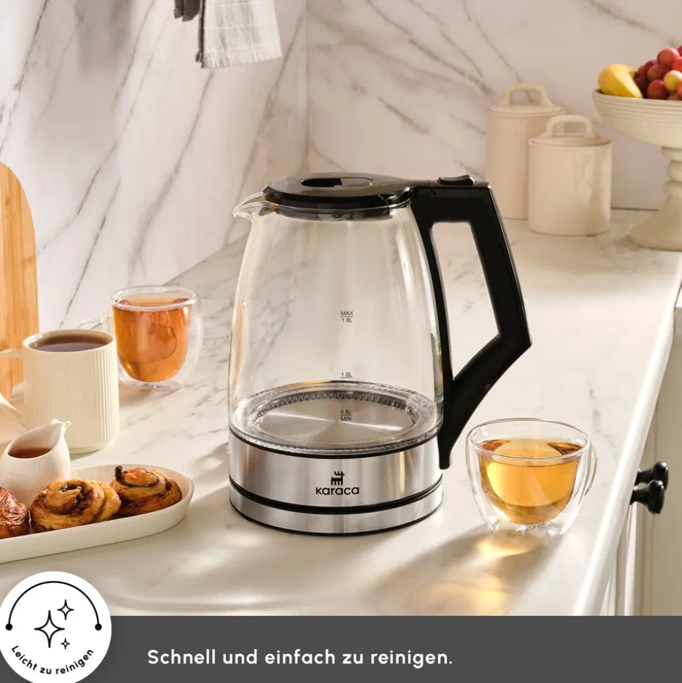 Karaca Glacia Glas Wasserkocher, 2200W, 1,8L, Transparent