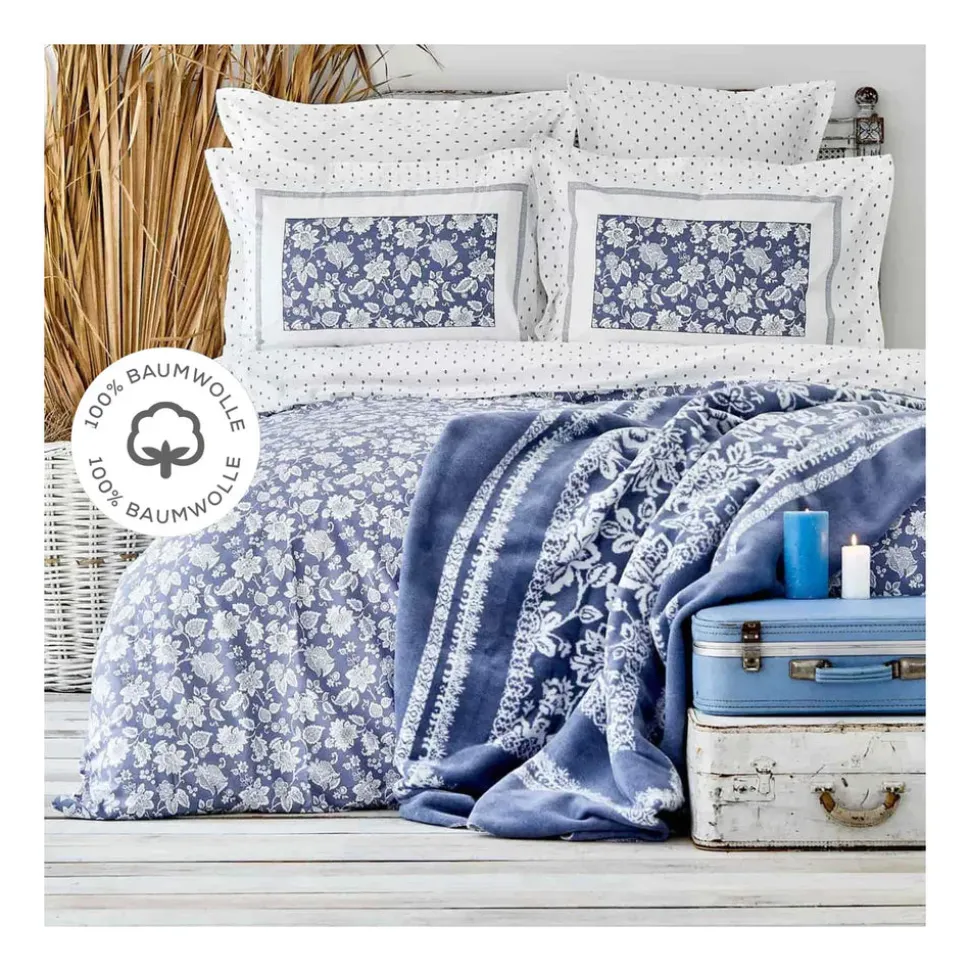 Karaca Home Celerina Blau 100% Baumwolle 2 Personen Bettwäsche-Set Inhalt des Sets