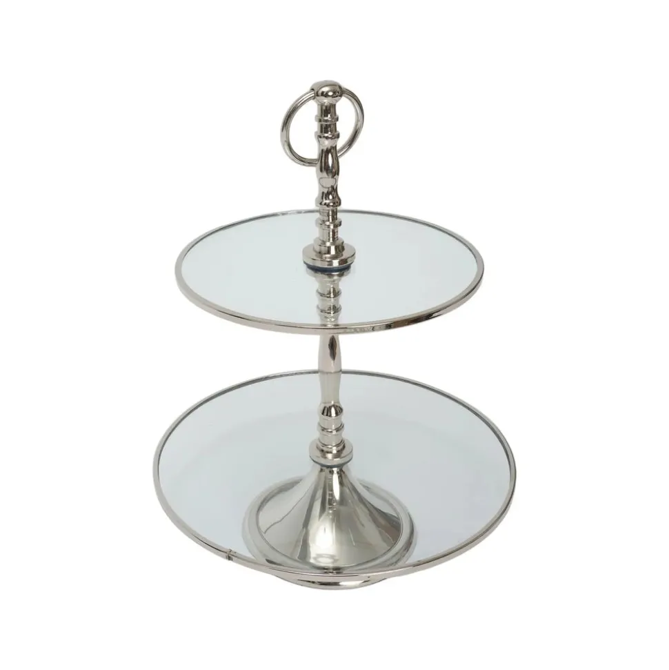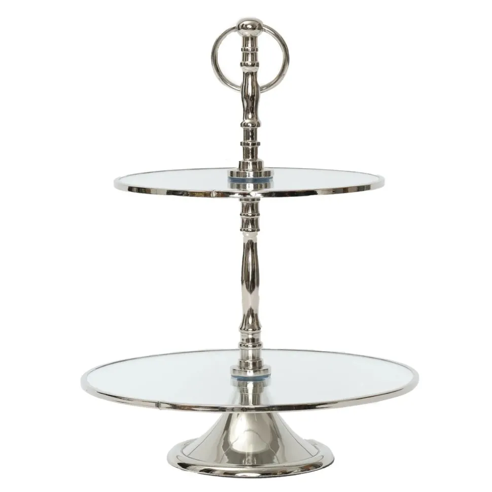 Karaca Home Line Dekorativer 2-stöckiger silberner Tortenständer 25 cm