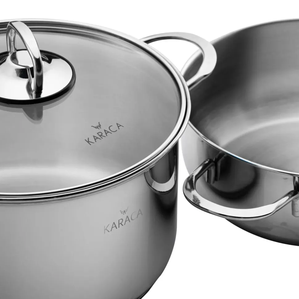 - Der Körper, die Griffe und der Deckel der Pfanne sind aus 316 (Grad) Edelstahl gefertigt