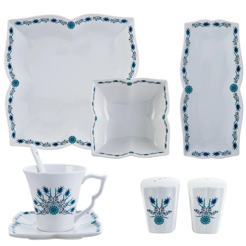 Karaca İznik Frühstücks-Set 32- teilig für 6 Personen in Karree-Form