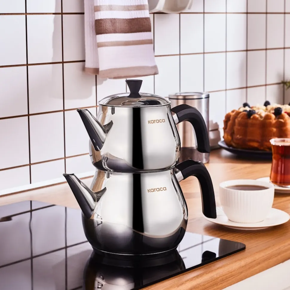 „Frühstück, Mittagspause, Genusszeit und After-Dinner-Tee sind nicht von Tee zu trennen. Deshalb ist uns leckerer und frischer Tee sehr wichtig. Karaca Kayra Teekannen-Set ist ein traditionelles Teebrühset mit Selbstfilter. 1 Lt Fassungsvermögen Teekanne und 1,75 Lt Teekanne. Diese Teekanne, die sich mit ihrer Tränke ideal für Familien von 4-6 Personen eignet, bietet auch eine geeignete Nutzung für Induktionsherde.“