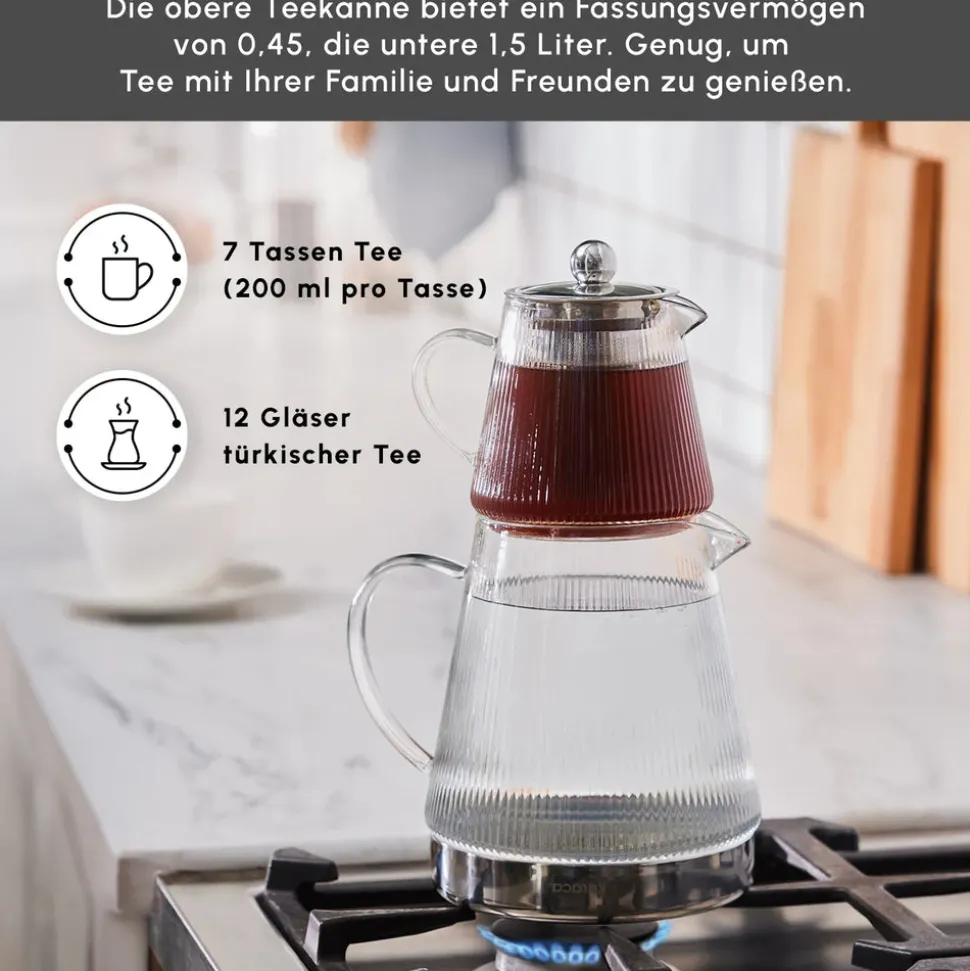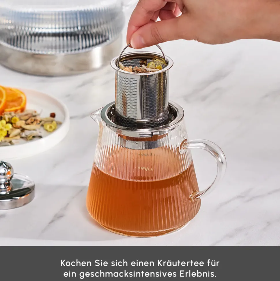 Bitte stellen Sie die Kanne nicht auf den Herd, wenn sie leer ist, und erhitzen Sie sie nicht.