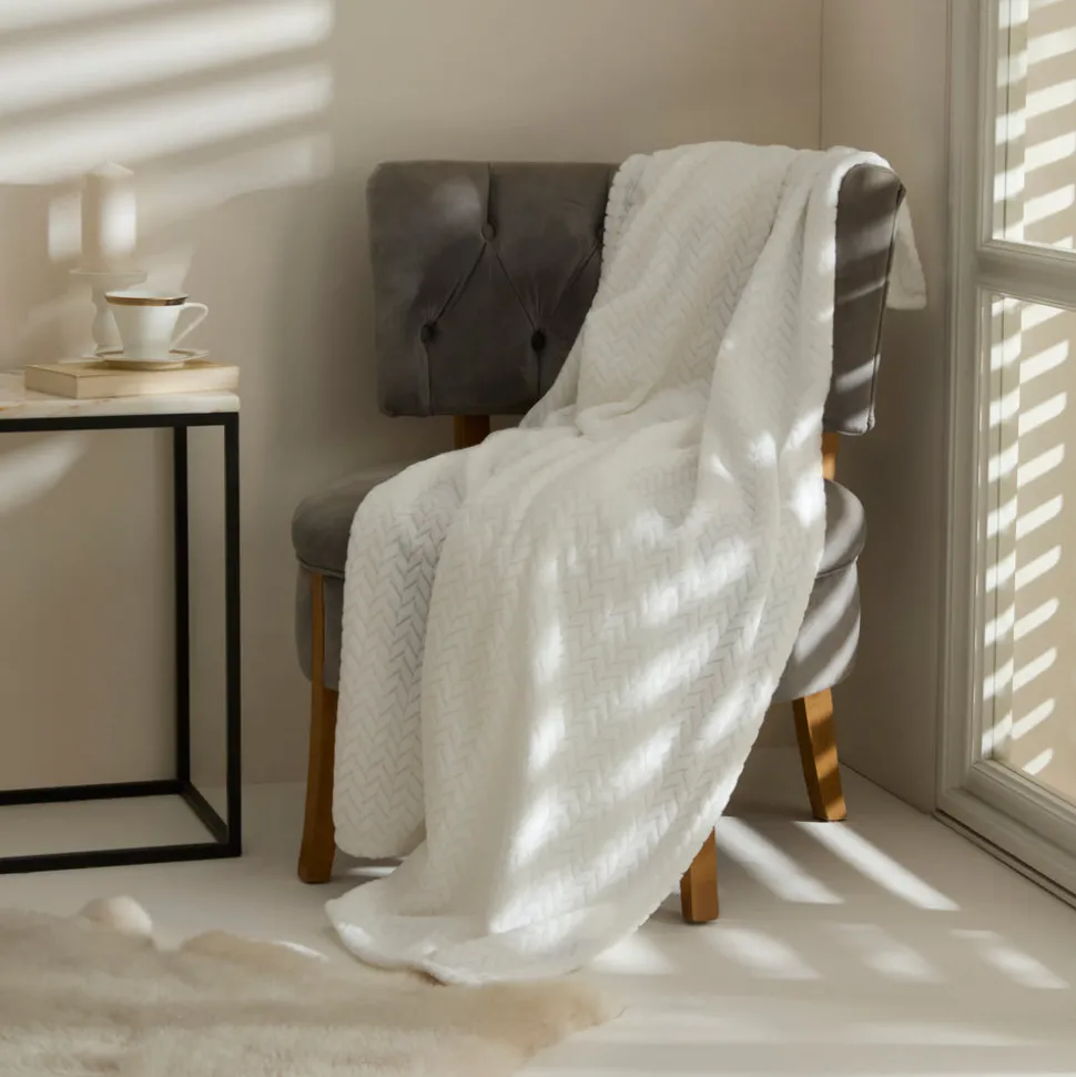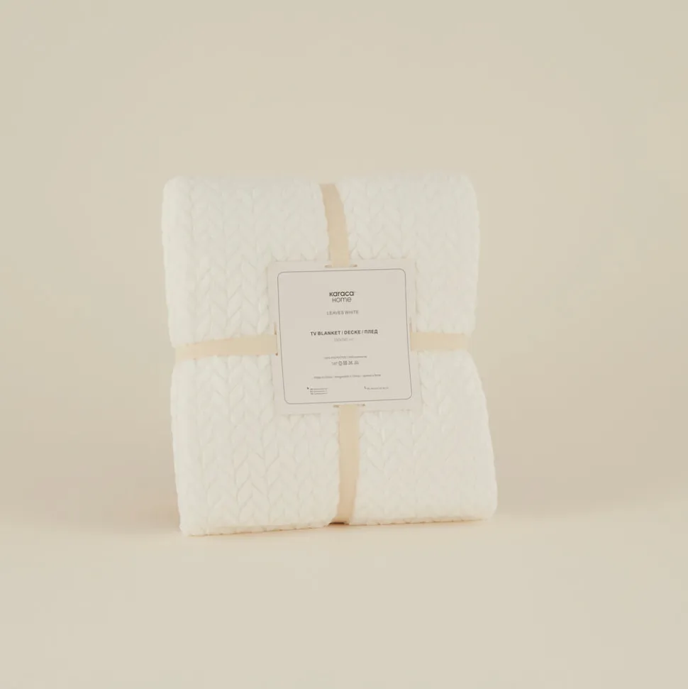 Karaca Leaves Weiße Welsoft TV Decke 130×150