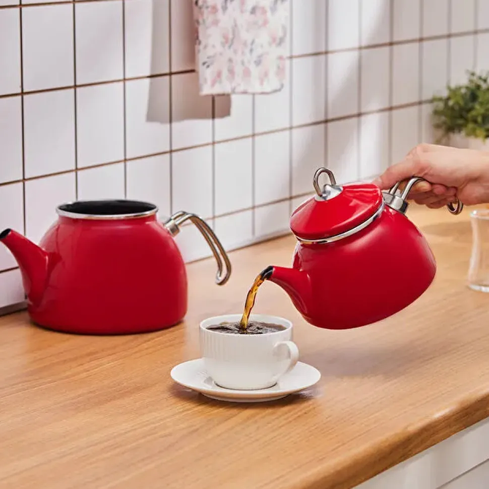 Karaca Loreto Emaille-Teekannen-Set – Rot