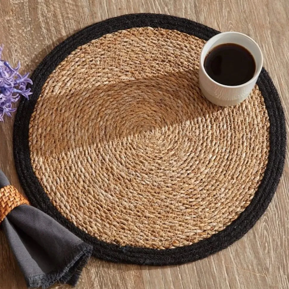 Karaca Luka Tischset aus Seegras und Jute, 37 cm, Schwarz