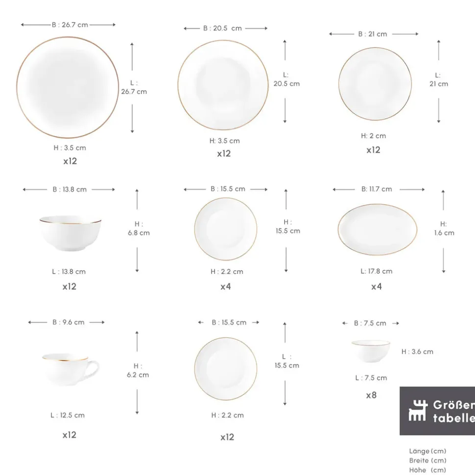 Karaca Marcelo Gold Geschirr und Frühstücks Set, 88 Teilig