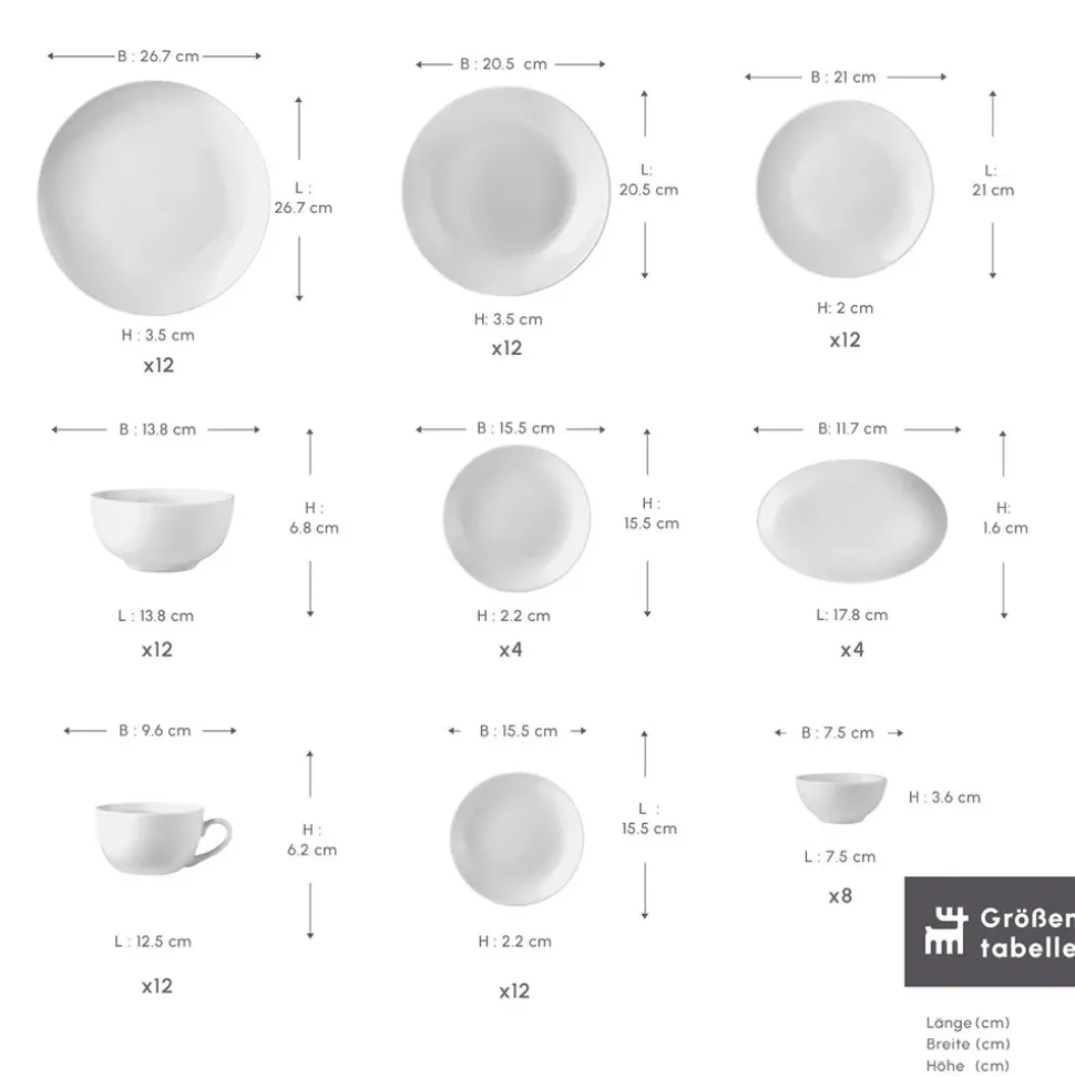 Karaca Marcelo Weiß Geschirr und Frühstücks Set, 88 Teilig