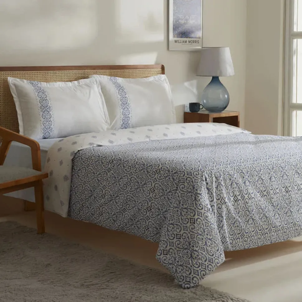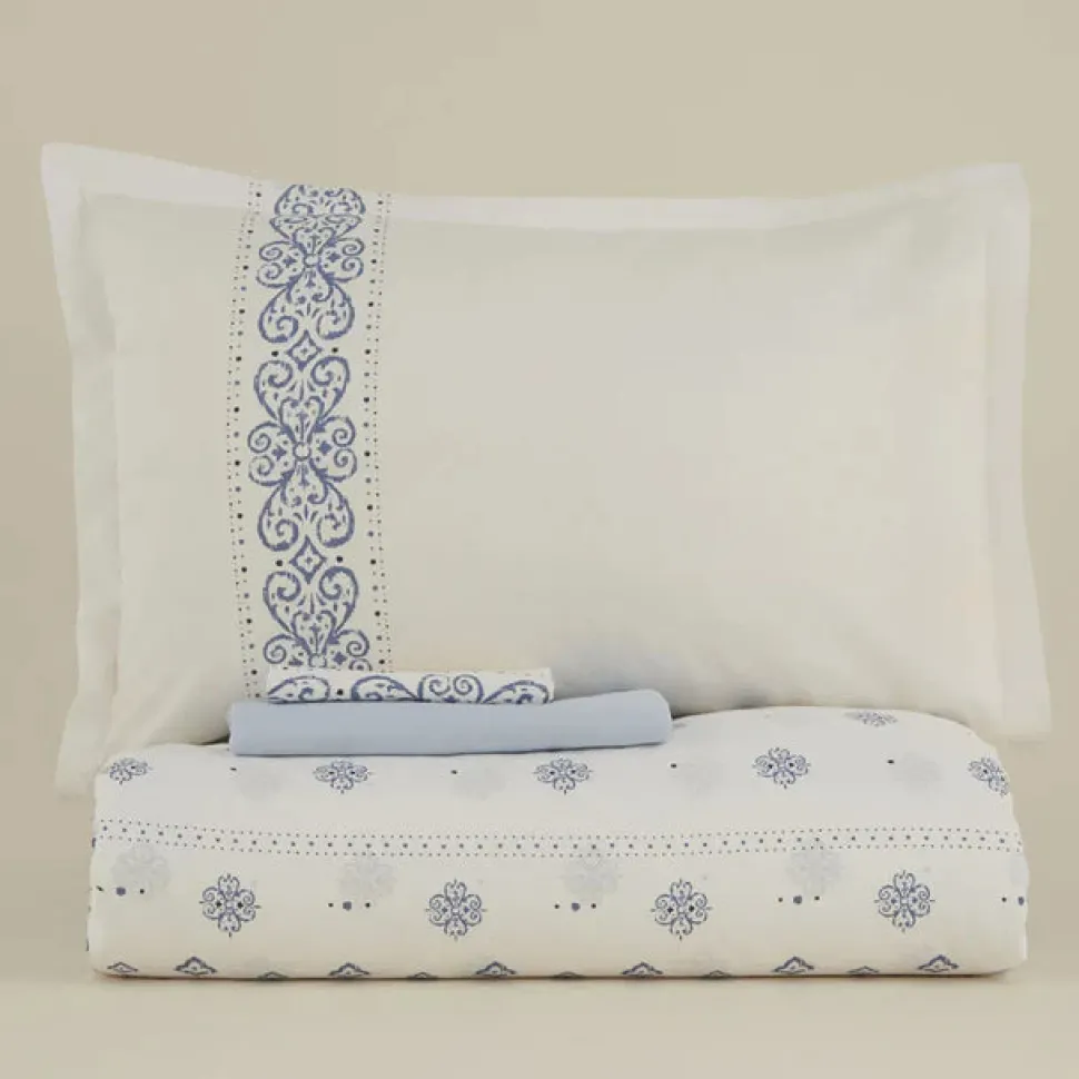 Karaca Marino Bettwäsche-Set aus 100 % türkischer Baumwolle, Doppelbett, Blau