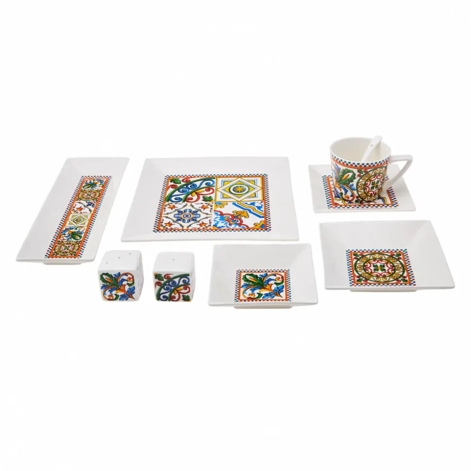 Karaca Milano Quadratisches Frühstücksset und Servierschalen 32 Teile für 6 Personen
