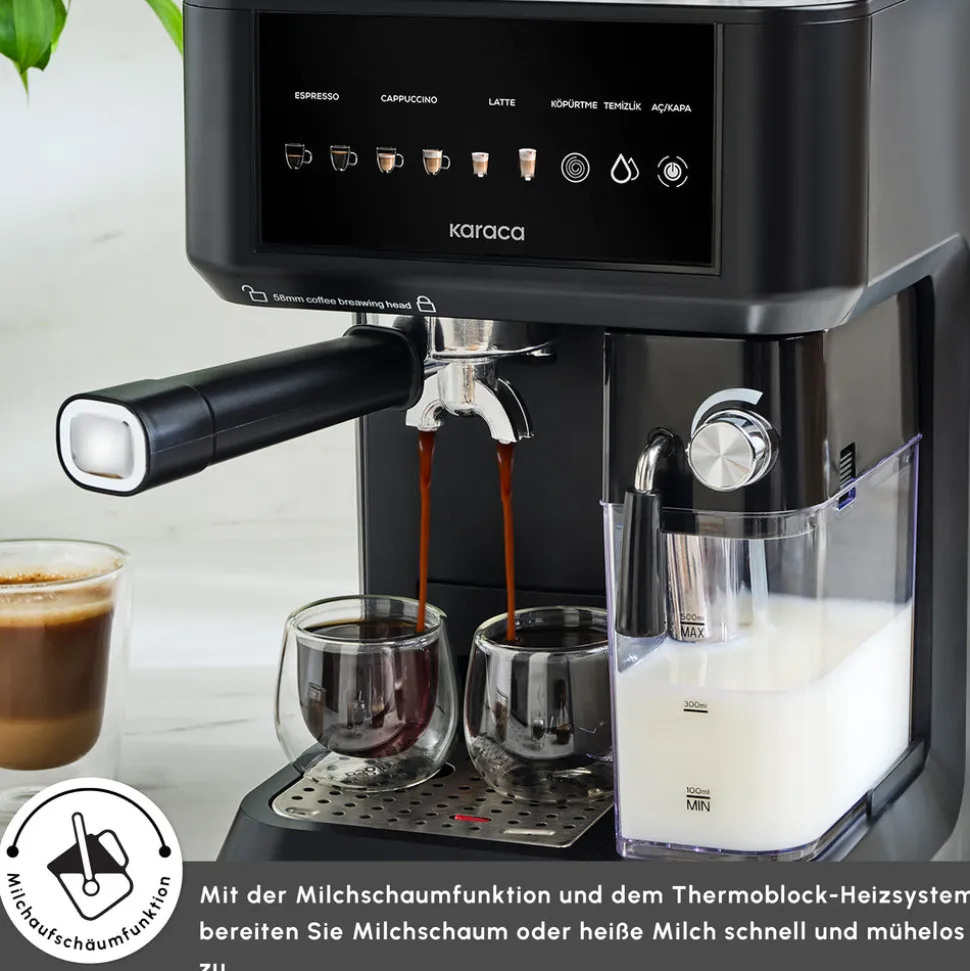 Karaca MyCaffe Barista S10 Automatische Espresso-, Latte- und Cappuccino-Maschine mit integriertem Milchbehälter – Matte Black