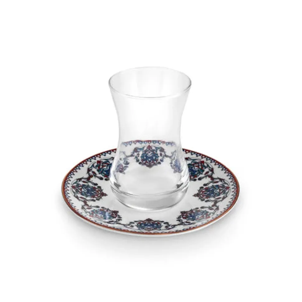 Karaca Nakkas 12-teiliges Türkisches Teeset aus Bone China für 6 Personen, 130 ml, Rot
