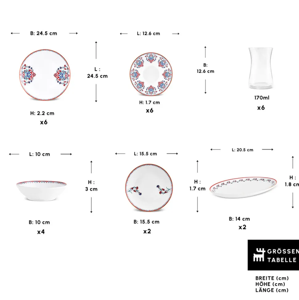 Karaca Nakkaş 26-teiliges 6-Personen Frühstücksset