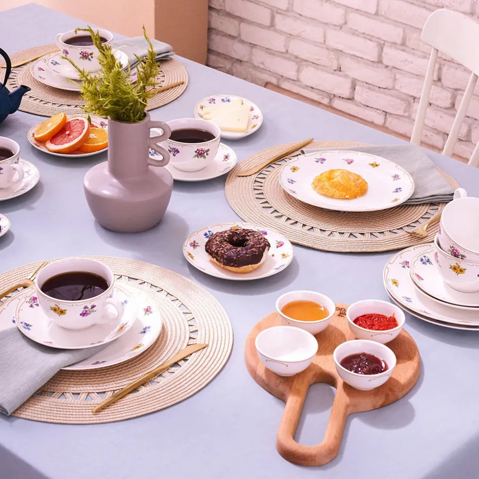 Karaca Natty 6 Personen Frühstücksset und Servierschalen, 26 Teilig, New Generation Bone