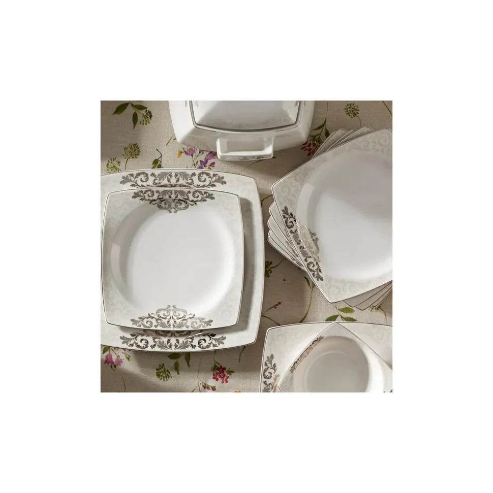 Karaca Nazende Cream 60-teiliges Tafelservice für 12 Personen Eckig