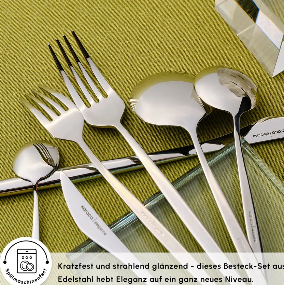 Ob bei einem formellen Dinner oder einem entspannten Essen mit Ihren Lieben, das Karaca New Porto Elegance Besteck-Set bringt zu jeder Gelegenheit einen Hauch von Raffinesse. Mit seiner hochwertigen Verarbeitung und seinem eleganten Design ist diese Kollektion ein unverzichtbares Element für jedes moderne Zuhause.
