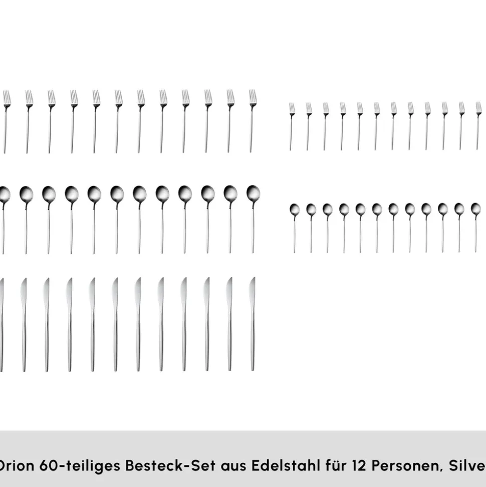 Karaca Orion Silver 60-teiliges Besteckset für 12 Personen