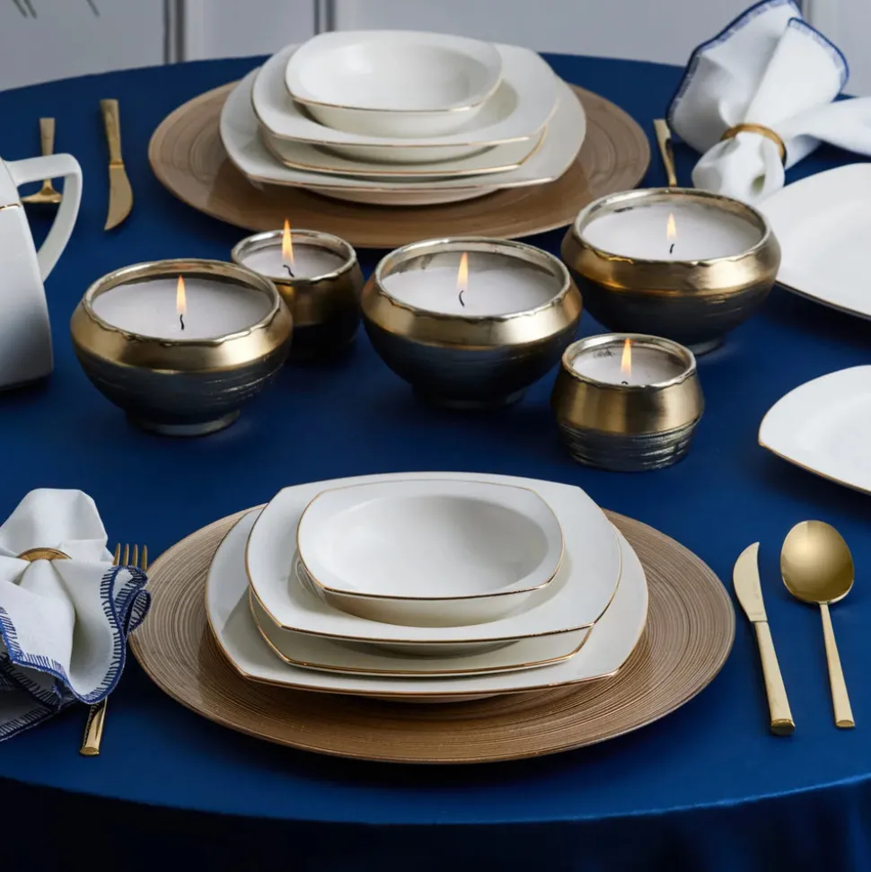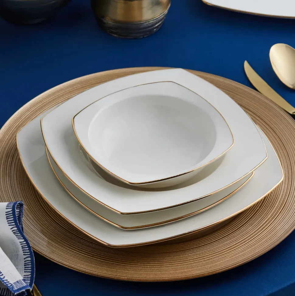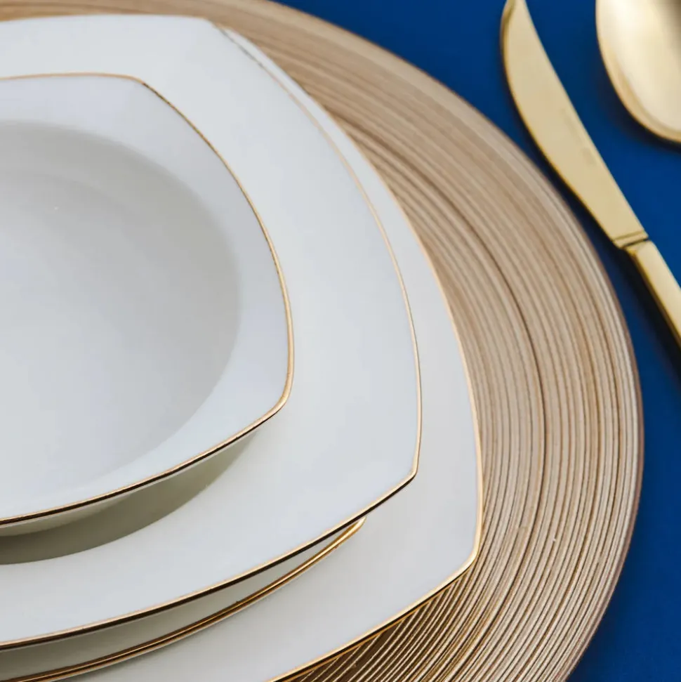 Karaca Chiara Fine Cream 12 Personen Geshirrset, 60 Teilig, Porzellan, Gold