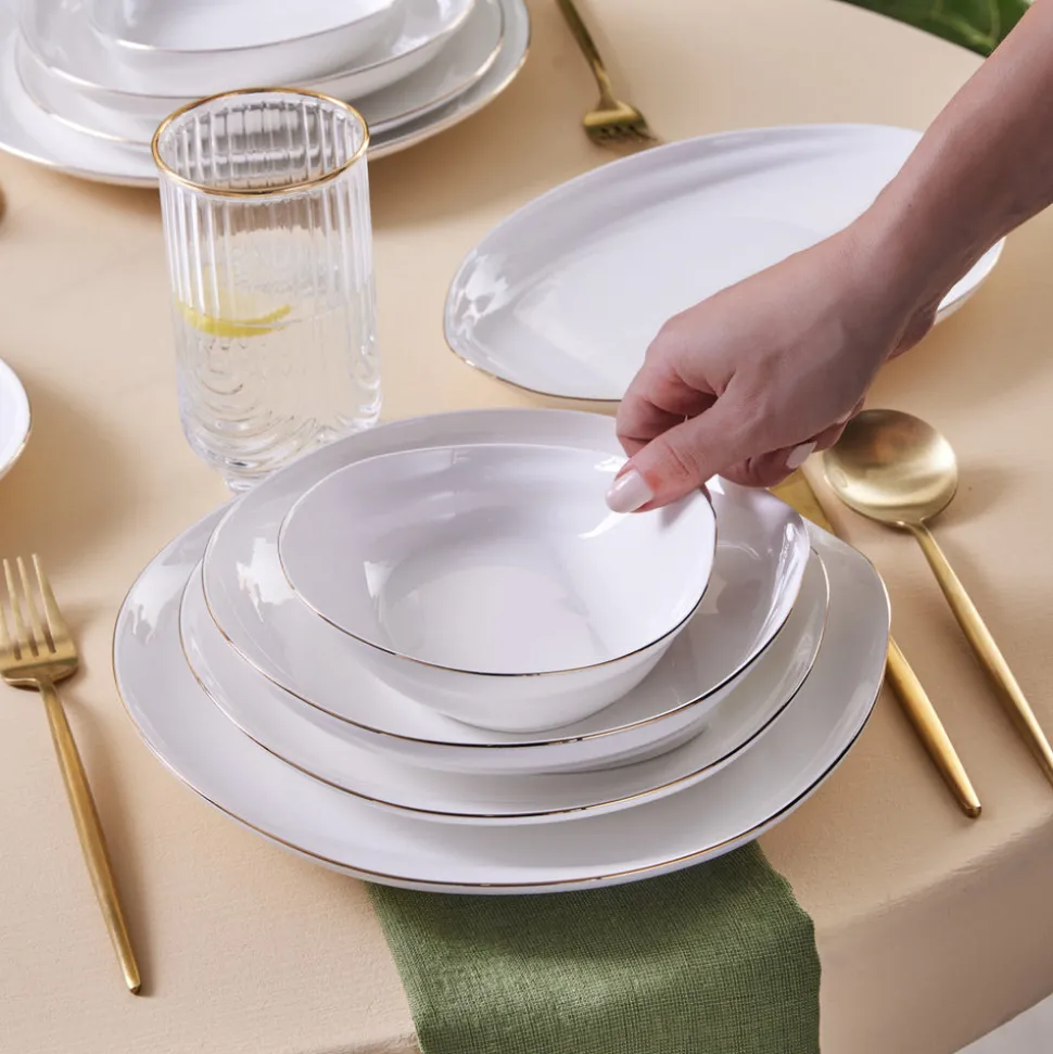 Die Karaca Stream Bone Serie verbindet die Eleganz des Minimalismus mit modernen Details und bringt fließende Eleganz auf Ihren Tisch. Diese besondere Serie zeichnet sich durch ihre weichen Linien und geschwungenen Kanten aus und wurde für alle entwickelt, die einen schlichten, aber beeindruckenden Tisch decken möchten.