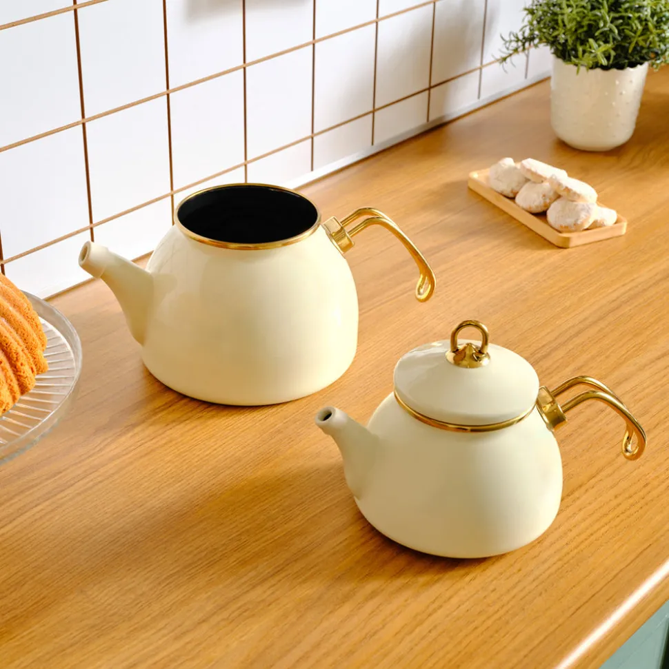 Karaca Retro Emaille-Creme-Teekanne