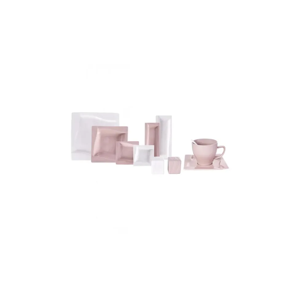 Lassen Sie das 32-teilige Frühstücksset Square von Karaca seinen Platz auf dem köstlichen Frühstückstisch einnehmen… Das Set enthält ein persönliches Frühstücksservice für 6 Personen sowie je zwei Salzstreuer, Marmeladenstreuer, Olivenstreuer und Käseteller, die für die allgemeine Tischgestaltung erforderlich sind. Ein Paar ist aus weißem Porzellan, das andere aus rosafarbenem Porzellan. Dies verleiht dem Frühstücksset eine moderne Note. Sie können Ihren Frühstückstisch mit diesem besonderen Set decken, um die ersten Stunden des Tages lebendig und fröhlich zu gestalten.