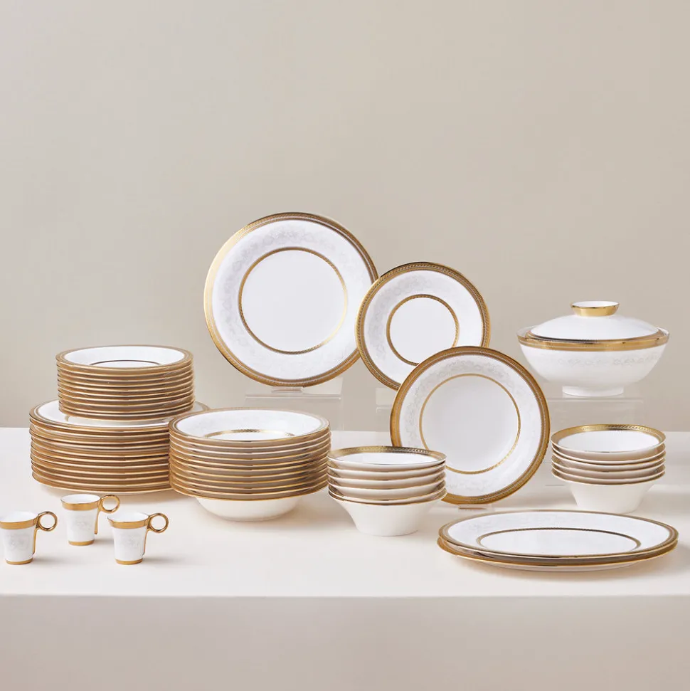 Karaca Royal Bone China Charlotte 55-teiliges Tafelservice für 12 Personen, Gold