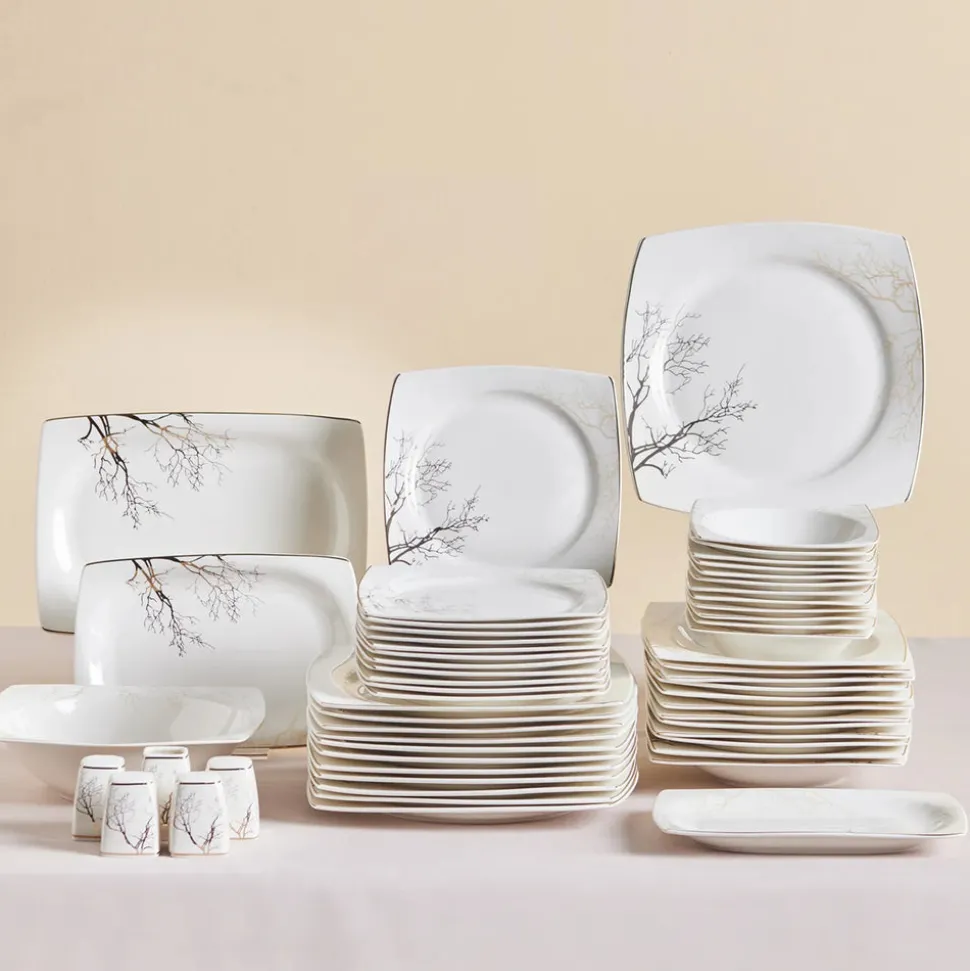 Karaca Square Bone New Autumn 57-Teiliges 12-Personen Geschirrset Gold