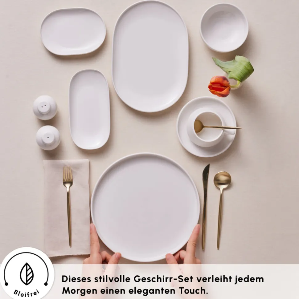 Karaca Stream Bone Meridian 34-teiliges Frühstücksset für 6 Personen – Weiß
